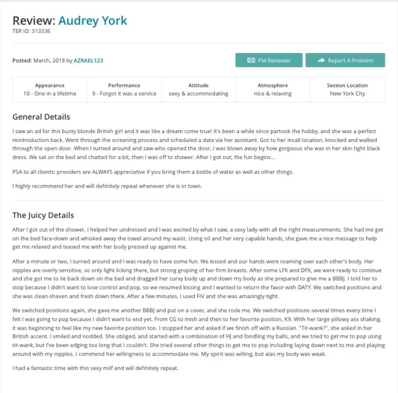 TOURING: March 9 - 12 Portland, ME March 12 - 15 Albany, NY March 15 - 18 Buffalo, NY March 18 - 21 Pittsburgh, PA March 21 - 24 Philadelphia, PA March 24 - 26 Raleigh, NC March 26 - 28 Charleston, SC March 28 - 30 Atlanta, GA March 30 - Apr. 2 Houston, TX April 2 - 5 Dallas, TX April 5 - 8 Albuquerque, NM April 8 - 11 San Jose, CA April 13 - 16 Seattle, WA April 16 - 18 Bellevue, WA April 18 - 22 Anchorage, AK ๐ ๐โจ๐๐โจ๐ ๐ ๐ INFORMATION Name: Audrey York Height: 5โ6โ Weight: 120 lbs Measurements: 32D-20-32 (Enhanced) Grooming: Bare ๐ ๐โจ๐๐โจ๐ ๐ ๐ MY LINKS: P411 โ https://preferred411.com/P244134 Private Delights โ https://privatedelights.ch/profile/AudreyYorkVIP TER ID: 313336 ๐ ๐โจ๐๐โจ๐ ๐ ๐ฌ CONTACT: Email โ [email protected] Website โ http://www.audreyyorkvip.com ๐ ๐โจ๐๐โจ๐ ๐ ๐ฑ SOCIAL MEDIA: All social media โ @AudreyYorkVIP
